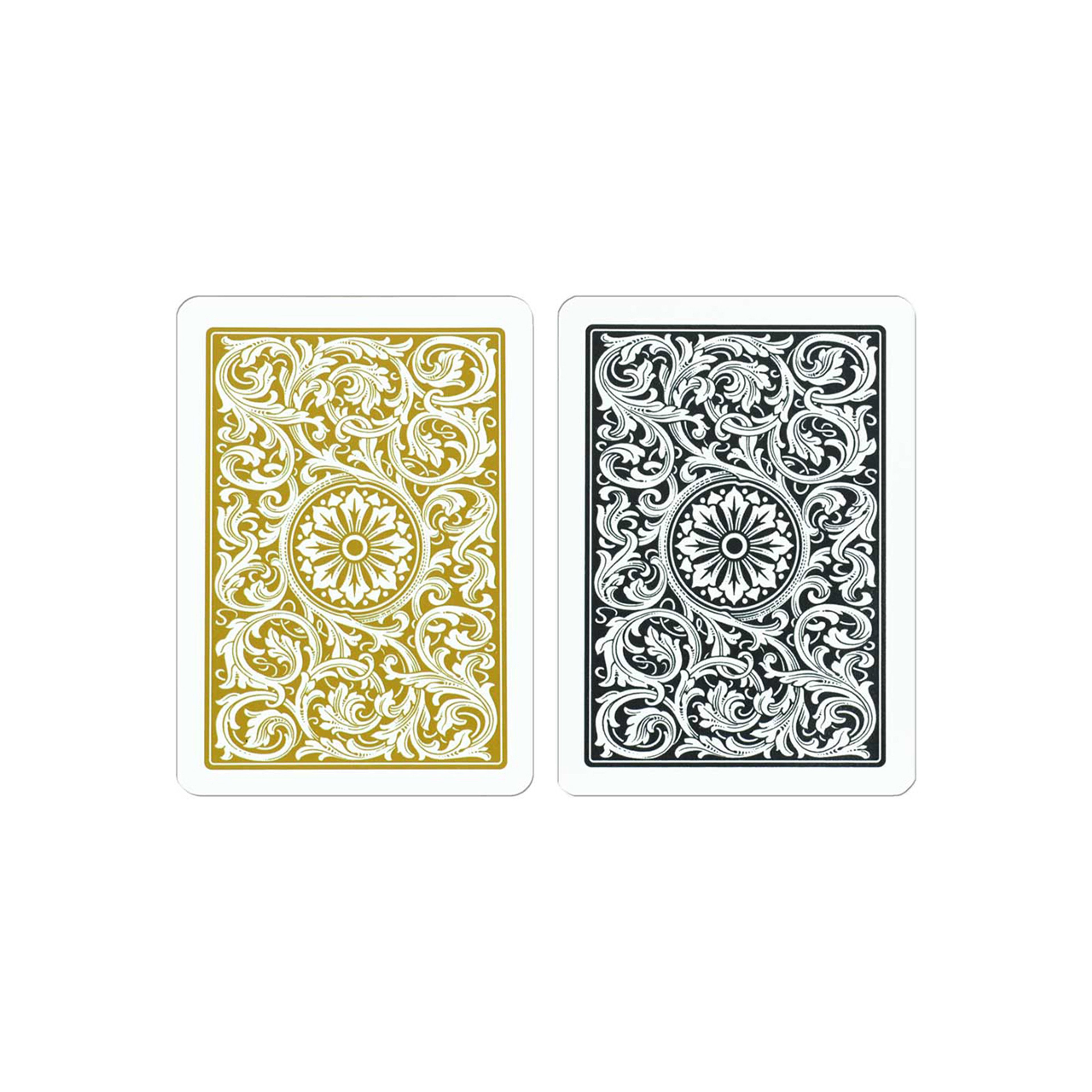 These two regulation-standard size (poker) decks measure 2 1/2 -by- 3 7/16 inches (W x H), and are made of practically indestructible PVC plastic material for years of use.